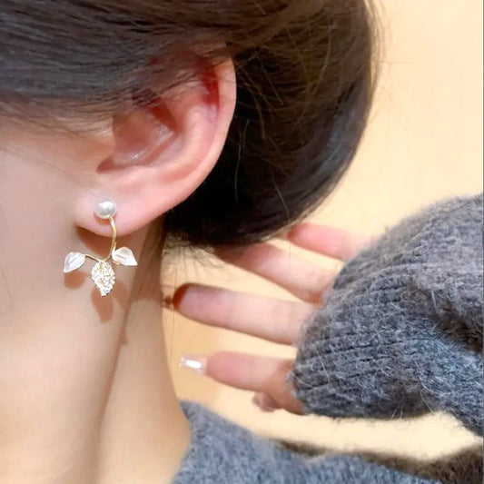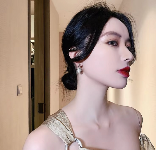 Elegant Dual Layer C Shape Pearl Hoop Earrings