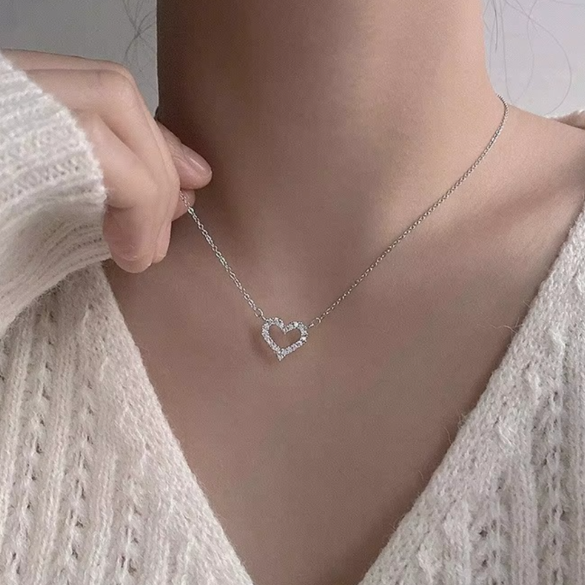 • Elegant hollow heart pendant with a radiant stone center